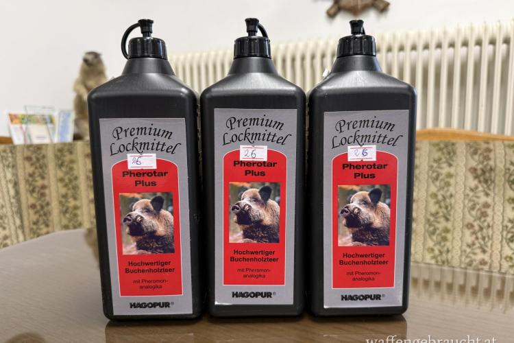 Hochwertiger Buchenholzteer mit Pheromon-Analogika, lockt Keiler und Bachen selbst aus großen Entfernungen an. Äußerst intensiver, lang anhaltender Duft.