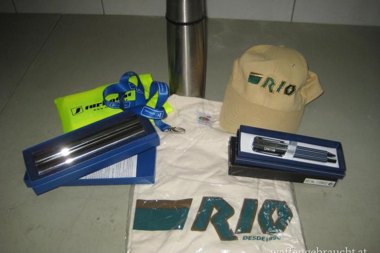 1 Stk. T-Shirt Gr. XL, 1 Stk. Kappe, 1 Stk. Thermoskanne, 1 Stk. Languard, 1 Stk. Schreibset, 1 Stk. Behälter für eine Zigarre andere Seite für Schnaps, 1 Stk. Warnweste. € 30,-- Bei Fragen Handy Nr. 0676 9373888