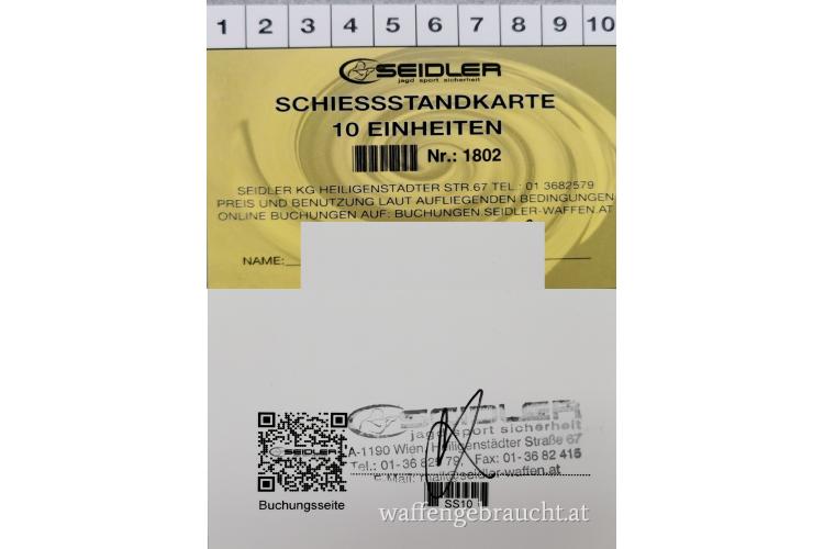 Schießstandkarte der Fa. Seidler, 1190 Wien, für 10 Stunden / 20 halbe Stunden